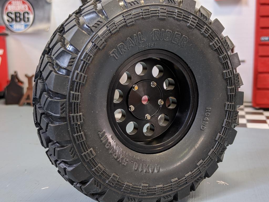 The fully machined 12mm hex seat will sit solid on the axle and with the -1.1mm offset your tires will tuck right in. These rims feature a full width of 26mm measured outside the lip, and will beadlock all the regular crawl tires from all manufacturers. This means the tire will fit more square on the sidewall, reduce puffy foam issues, and make a more realistic tire tread print. Check out this link HERE for info on tire foam trimming for perfect fitment on wide tires. Also fits Pro-Line tires, and everything else we have tested.